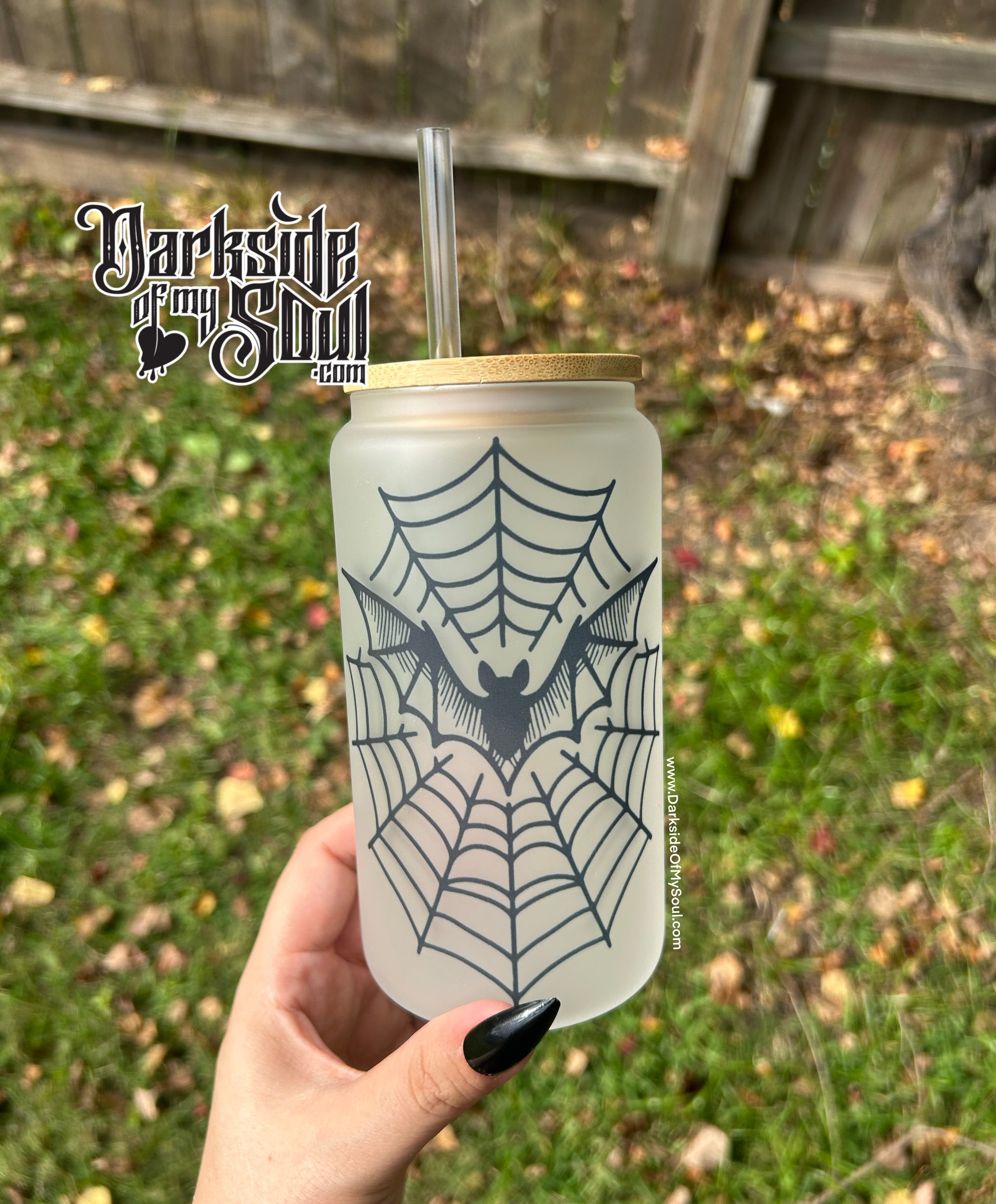 Bat Spider Web | 16oz. Frosted Glass Cup