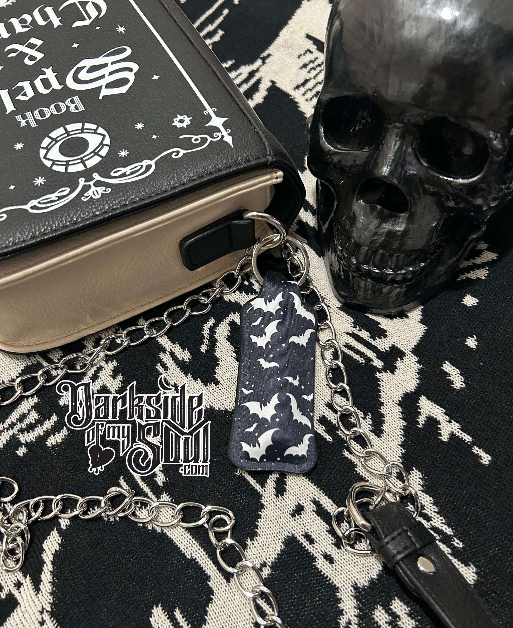 Accessorize your keychain...bag/purse, gym bag with this spooky bat chapstick holder. Small and lightweight and easy to carry. A must for every spooky goth girl