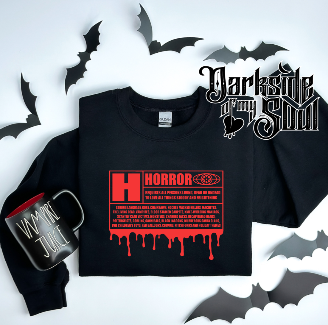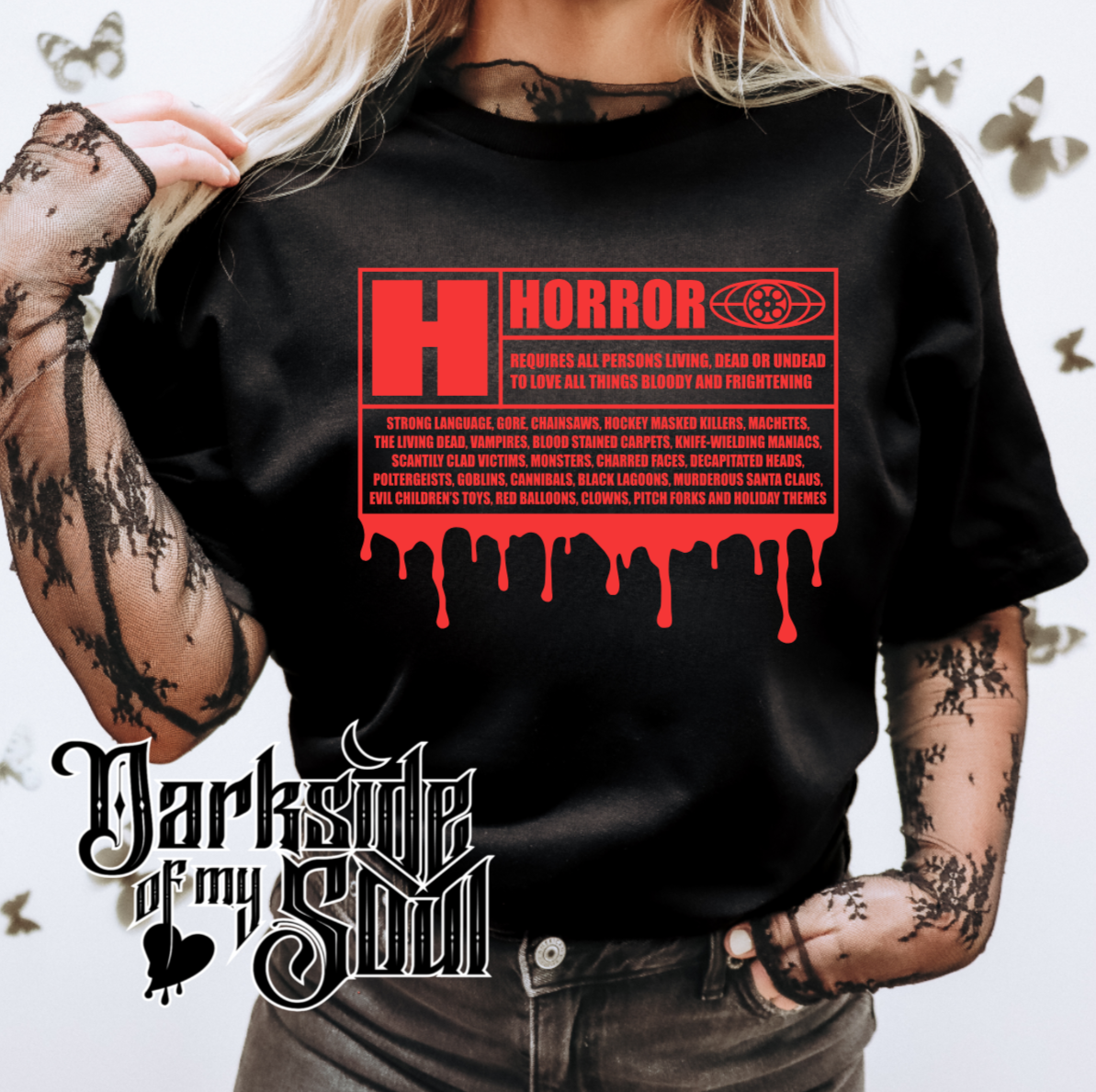 Are you a horror fan? This is the perfect gift for those who love horror movies or the genre itself. Hand pressed using screen printed plastisol ink.