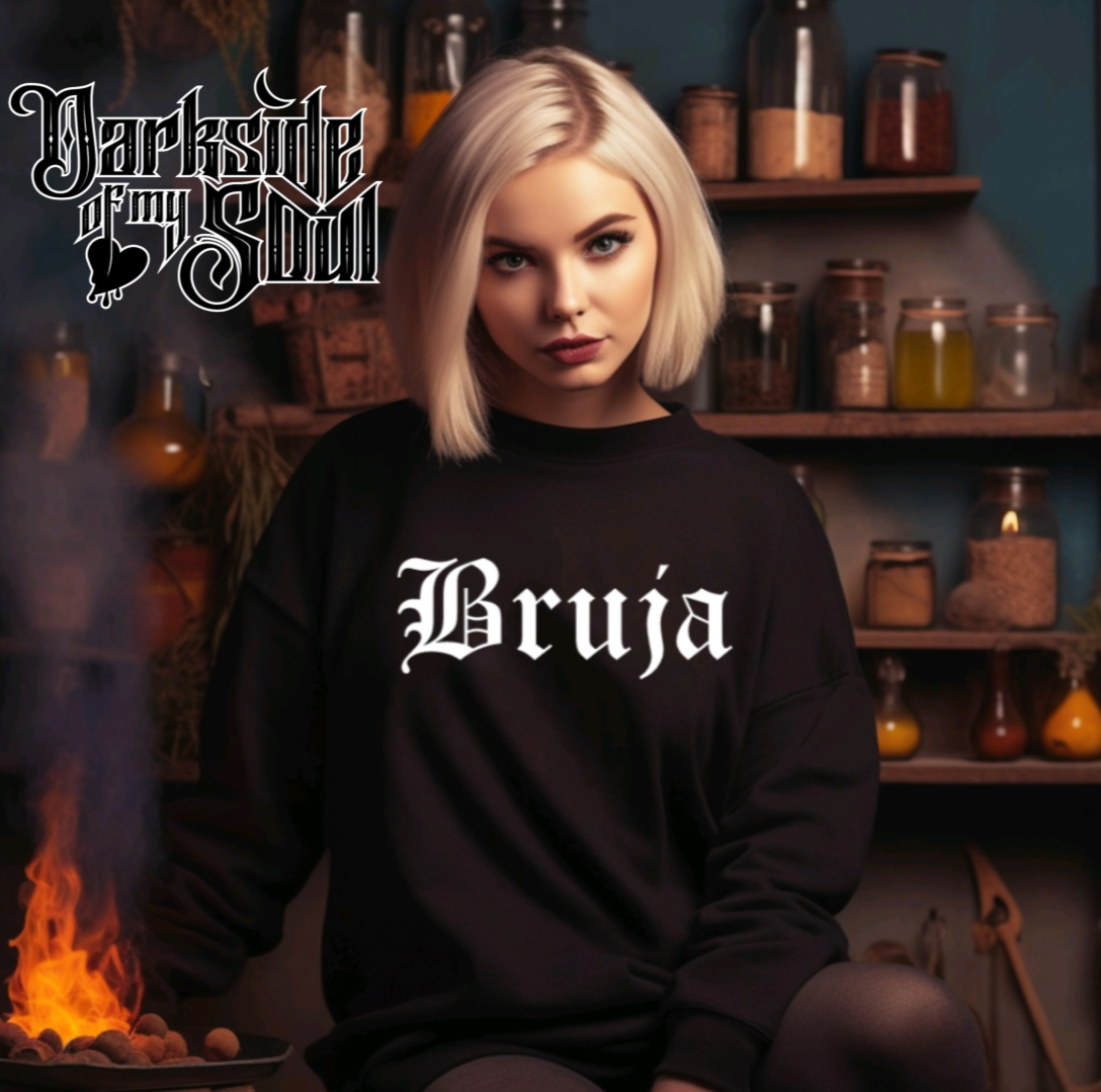 Calling all Brujas...this is the perfect accent to add to your witchy wardrobe. Let the whole world know that you're a Bruja and proud. Hand pressed using screen printed plastisol ink.