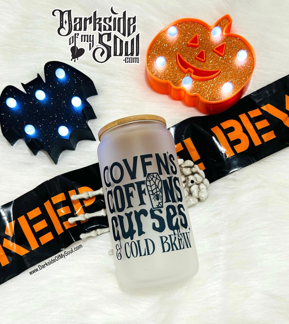 Covens Coffins Curses And Cold Brew | 16oz. Frosted Glass Cup