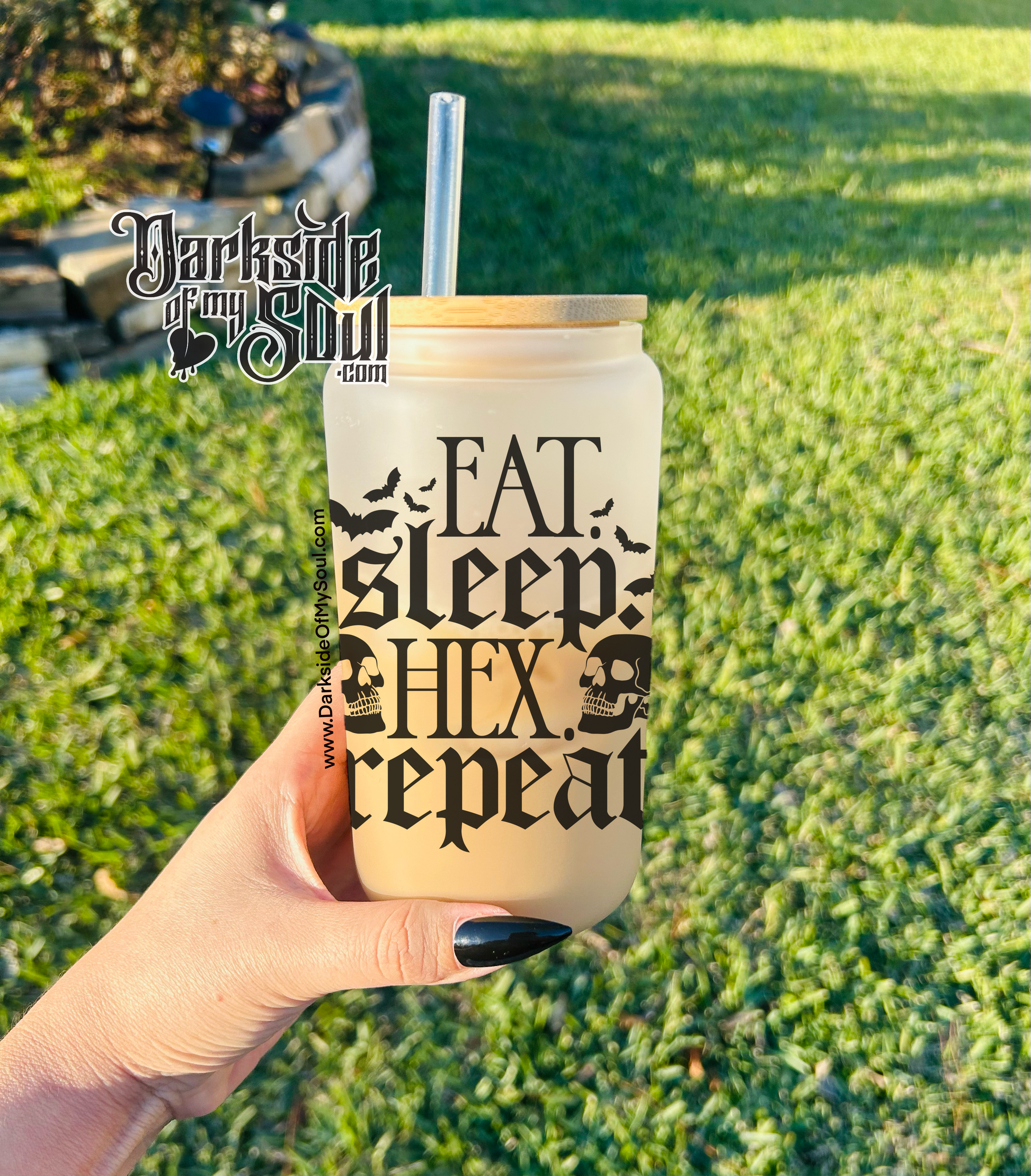 Eat Sleep Hex Repeat | 16oz. Frosted Glass Cup