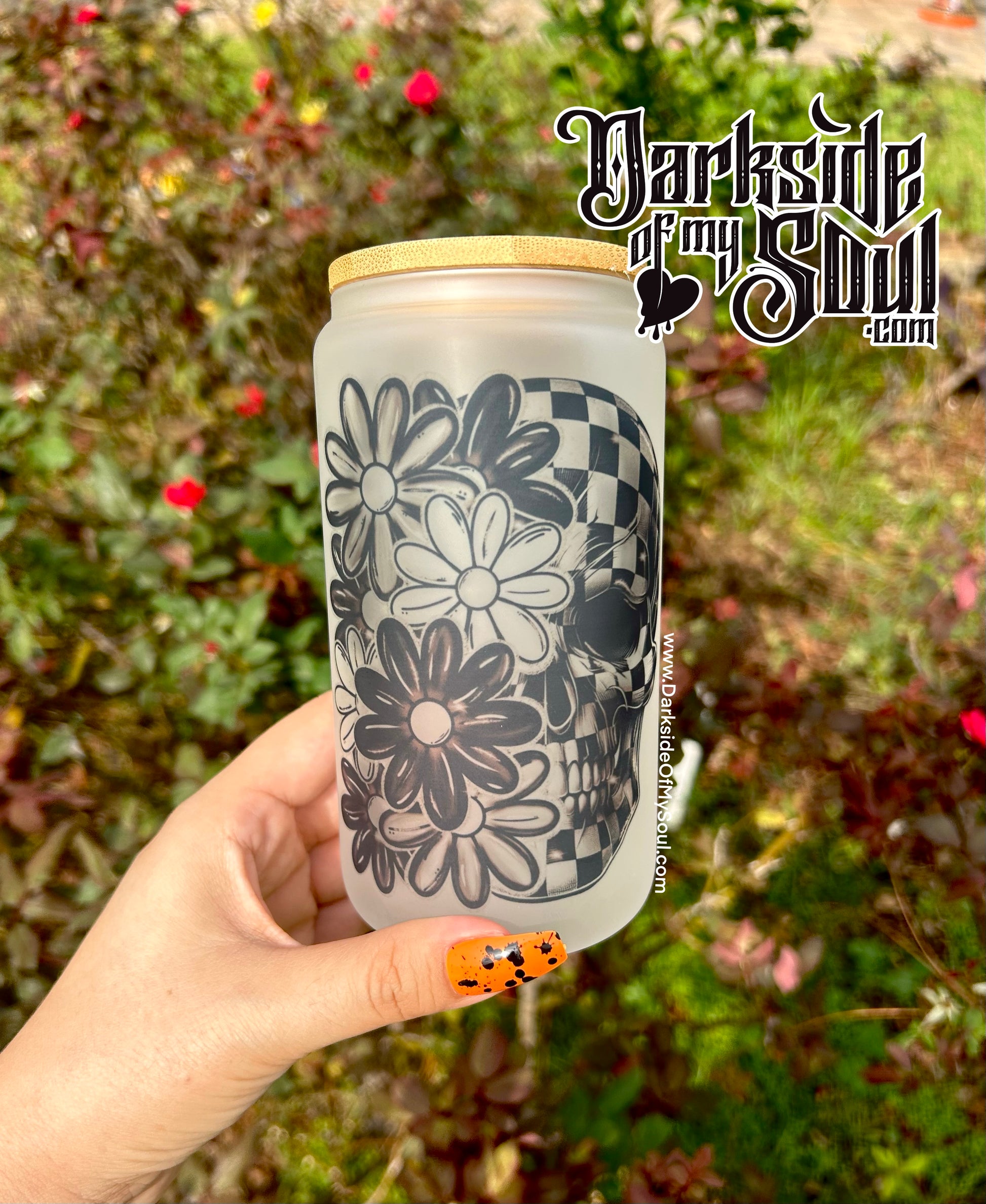 Flower Skull | 16oz. Frosted Glass Cup