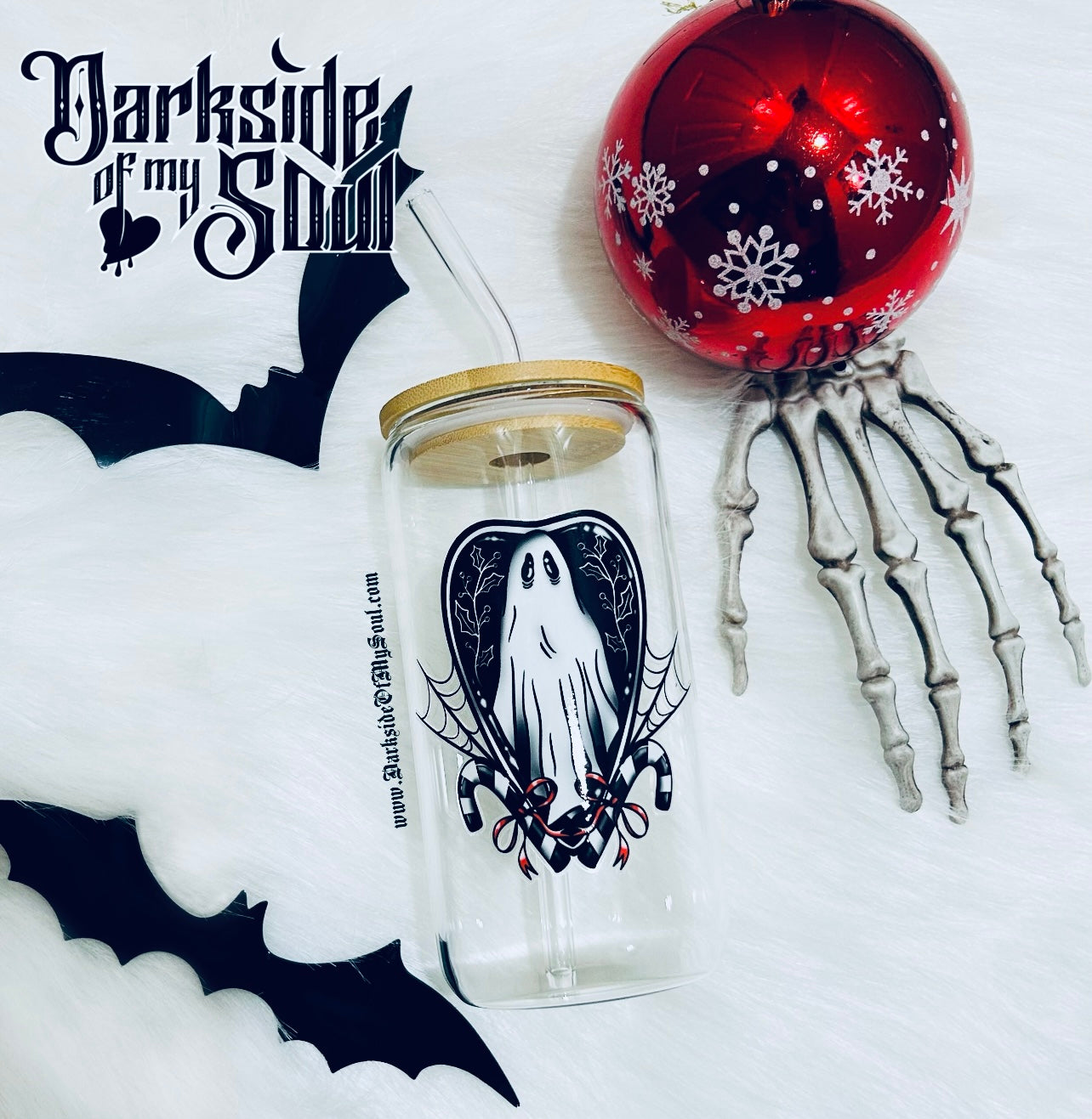 Ghost Heart Candy Cane | 16oz. Glass Cup