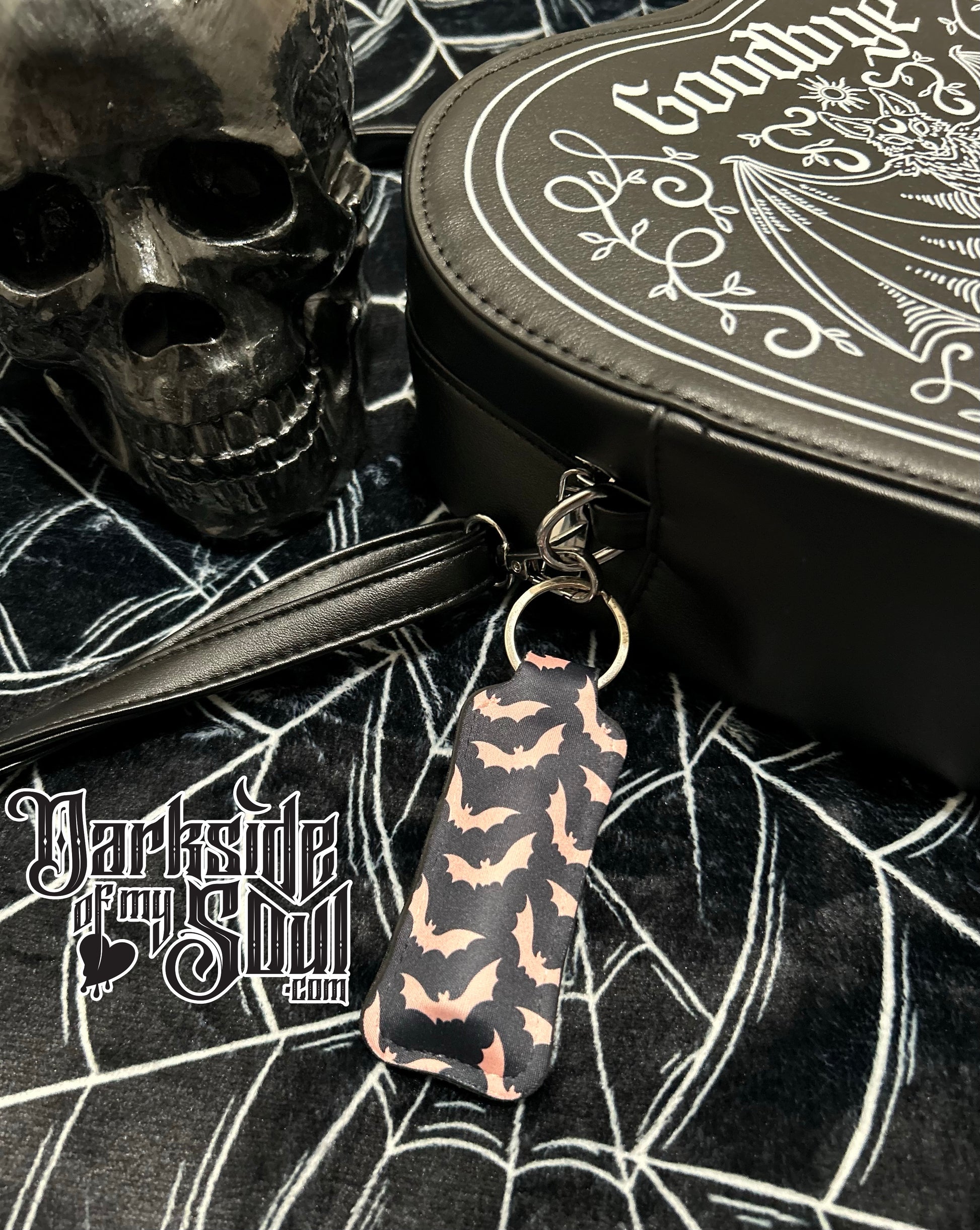Accessorize your keychain...bag/purse, gym bag with this spooky bat chapstick holder. Small and lightweight and easy to carry. A must for every spooky goth girl