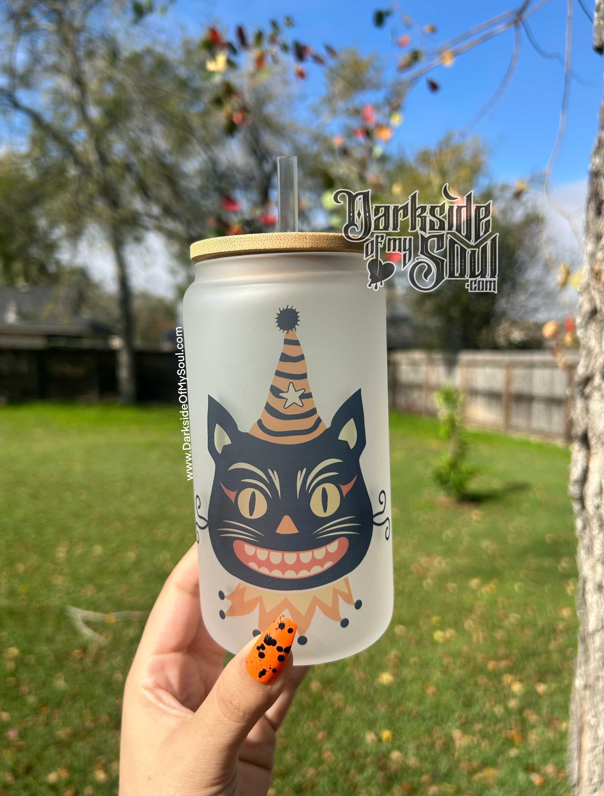 Vintage Halloween Cat | 16oz. Frosted Glass Cup
