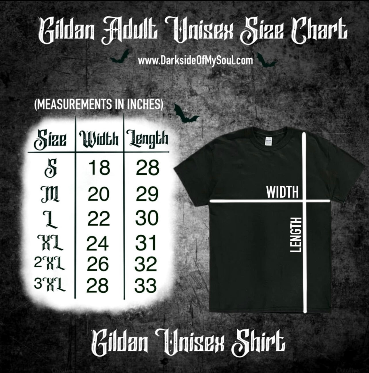 PLEASE NOTE: this is a black unisex shirt...ladies if you would like a more fitted look I suggest getting 1 size smaller...please keep this in mind when choosing a size
