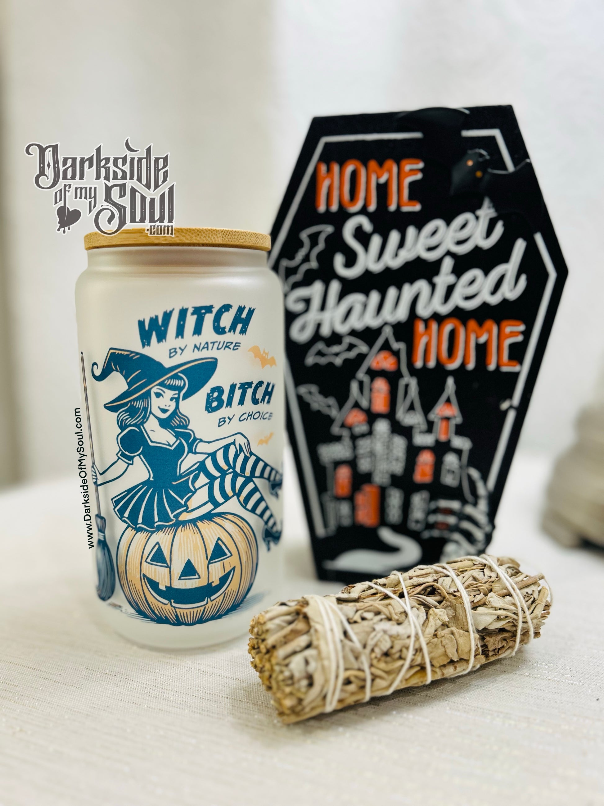Witch By Nature Bitch By Choice | 16oz. Frosted Glass Cup